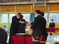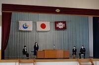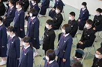 3月10日(木)第75回卒業式が行われました。新型コロナ対策を講じて体育館を式場にして実施しました。在校生は式場と教室に分かれリモートを活用しながら参加しました。