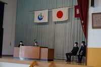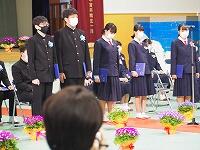 歓迎の儀では、生徒会長からは、「どんなことでも頼ってください」と歓迎の言葉がありました。新入生代表からは、「早く西方中学校での生活になじんで学習に励んでいきたい。」との誓いの言葉がありました。