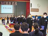 厳かに式が挙行され、「お別れの議」では在校生から涙ながらに感謝の言葉が伝えられました。続いて卒業生からは、三年間を振り返り、支えてくださった皆様への感謝の言葉が述べられました。