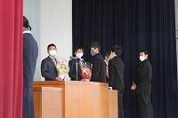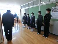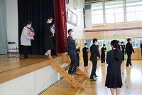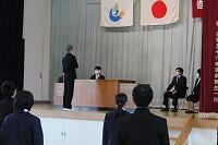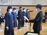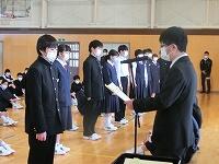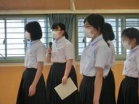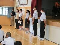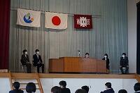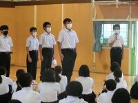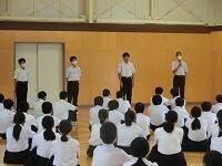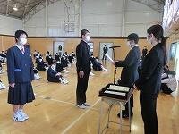 朝会で生徒会役員、各種委員会、学級委員長・副委員長の任命式が行われました。