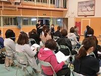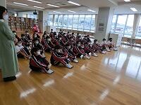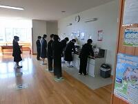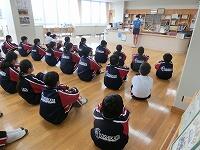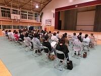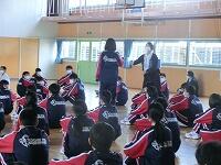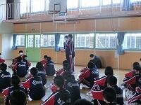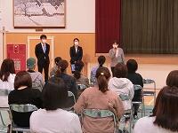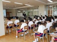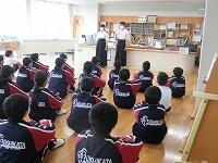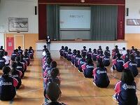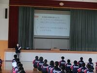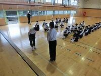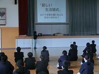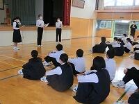 体育館で、交通安全、給食の配膳と片付け、学校生活の約束等の確認が行われました。
