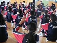 【準備運動】けがをしないように、しっかりと準備運動を行います。
