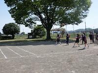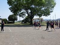 現在、体育の時間に新体力テストが行われています。50m走やハンドボール投げを校庭で行いました。写真は2年生の様子です。