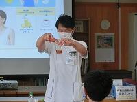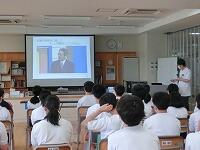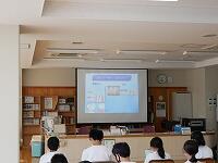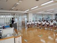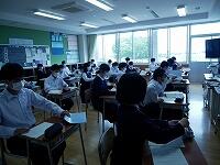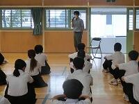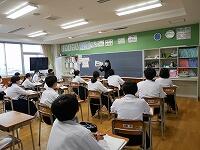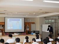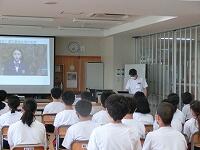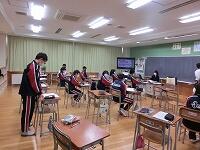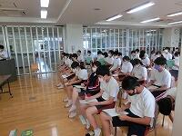 1年生を対象に学校医の先生による健康教室が行われました。主に歯肉炎・歯周炎の原因や予防法について学びました。クイズを交えながらのお話だったので、生徒も楽しみながら学ぶことができました。口呼吸を予防する「あいうべ体操」も体験しました。