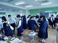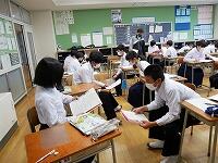地理分野「第3次産業はなぜ増加したのか」という問いに対して探究する学習を行いました。グループで話し合ったり、産業別就業者の割合のグラフを読み取ったりしながら、熱心に考察していました。教師の発問に対するつぶやきも多く見られました。