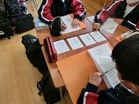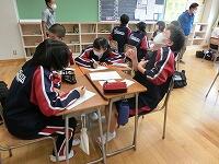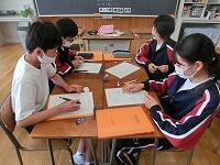 支離滅裂な文になってしまった時は、思わず笑い声が聞こえていました。最後にめでたしめでたしになるようにグループで工夫していました。