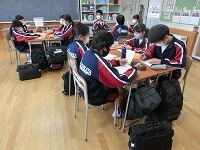 栃木市の図書カードがあれば本を借りることができます。早速たくさんの生徒が本を借りていました。