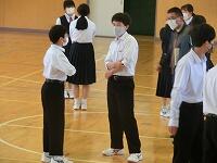 生徒会では、縦割りを主体にした活動を通して、1,2,3年生の仲間意識を助長し、「上級生が率先垂範し下級生をリードする」校風を継続させていこうと取り組んでいます。本日の生徒会集会は生徒会企画の第2弾として、「ジャンケン列車」が行われました。