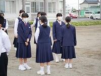 本日の生徒会集会は、全生徒を1年生から3年生を縦割りにした、3つのグループに分けて「挨拶ジャンケン」を行いました。これは、昨年度生徒会が実施したレクレーション大会から、学年の枠を越えて知り合うことができて楽しかったことから企画されています。ねらいとしては、①1,2,3年生の仲間意識を助長し、「上級生が率先垂範して下級生をリードする」という、よりよい校風を継続させる。②生徒同士の相互理解を図る。③生徒の主体的な活動を重視し、お互いを認め合い、終了後に1人でも多くの生徒が充実感や自己肯定感を高められるようにする。の3つがあります。コロナ対策から会場を体育館や校庭に分けて、生徒会役員がリードして今日の初めての試みが実施されました。