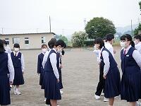 運動会の練習が始まりました。前半は舞踊「古城」の練習です。まず、1回通した後に、動きの確認・改善点を話し合い、それを2回目の通し練習に生かしました。動きにめりはりをつけて真剣に踊る姿が印象的でした。後半はリレー練習を行いました。グループでのバトンパス練習の後、トラックを使って走りました。
