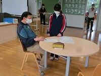 昨年度は、パワーポイントによるデジタル画像と放送を利用して、各教室をつないだ生徒総会でしたが、今年はさらにズームによるオンラインで教室と放送室をつないでの総会を行いました。生徒会活動スローガンは「光彩陸離~1人1人の活気で、西方中を輝かせよう~」です。話し合いの状況は、ズームで確認しながら進行していました。特に、第5号議案「各クラスのあいさつについて 課題と改善策」では各クラスで話し合い、話し合った内容を発表しました。その後、さらに具体策を考えようと各クラスの意見が全校に反映するように工夫していました。