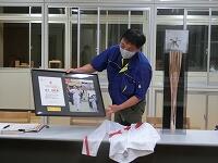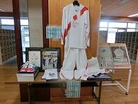 先日の聖火リレーでランナーを務めた方から、聖火ランナーの際に使用したトーチやユニフォーム、シューズ等をお借りしました。これらは現在、校長室に展示してあります。生徒は、昼休みを利用して展示物を見学しています。
