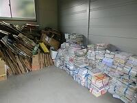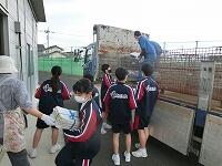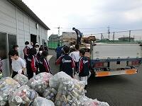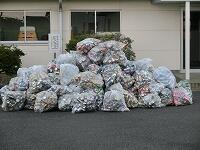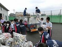生徒会活動のアルミ缶回収や日頃から資源物を持ち込んでくださる地域の方、保護者の皆さまのおかげもあって、たくさんの資源物を搬出することができました。今後とも御協力をお願いします。資源物の益金は大切に利用させていただきます。
