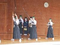 県春季大会(弓道)が6月4日(金)、5日(土)の両日に行われました。4日は、男子の部が行われました。強い雨が降り続くあいにくの天気の中行われ、残念ながら予選で敗退しました。5日は女子の部が行われました。団体戦は、予選を4位で通過し、トーナメント1回戦で小山城南中と対戦しました。結果は6対8で惜敗し、ベスト8でした。