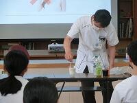 次に日常生活での薬の飲み合わせによる注意を、演示実験を行いながら説明していただきました。