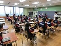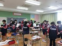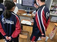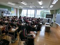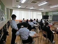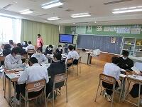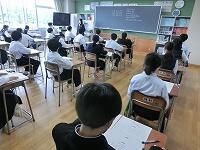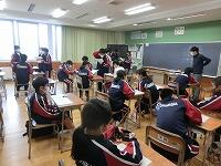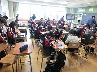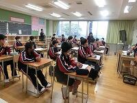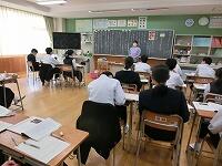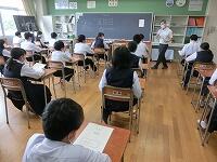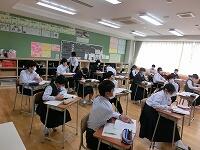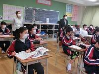 今日は小中一貫教育の一つとして、小学校の先生が中学校1年生の授業を参観しました。小学生の時にお世話になった先生が教室に訪れると聞いた1年生は、わくわくしていました。