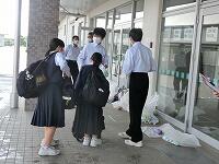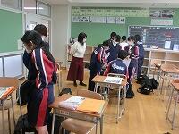 西方中の良き伝統の1つ「立ち止まってあいさつ」を全員で確認。