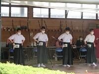 【弓道】1チーム6人で1人4射を2回行い、合計得点で競います。8射中7本的中する選手もいましたが、合計得点2点差で7位となり、残念ながら、決勝トーナメント(6チーム)進出には届きませんでした。