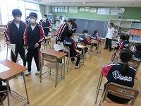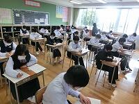 今日から中間テストです。1年生は初めての定期テストなので、朝からちょっぴり緊張気味でした。今日は3教科、明日は2教科のテストを行います。テスト問題が配られ、試験開始になると鉛筆の走る音が聞こえていました。