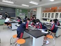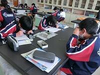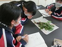 1年2組は理科の授業を参観しました。単子葉類と双子葉類の根や葉脈の違いを観察して、その違いを理解する授業でした。グループごとに熱心に観察して、スケッチしていました。