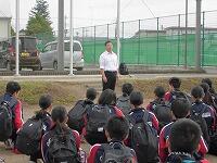 ▲校長先生のお話 ▲学年主任・奥山先生のお話