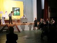 1年生のステージ発表「ハンドベル演奏」、2年生のステージ発表「映画(ニシカタスイッチ)」