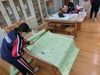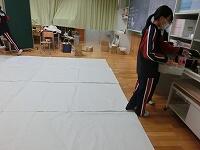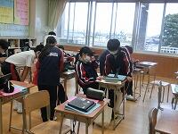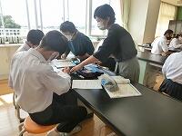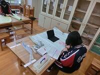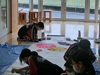 家庭科では、アシストネットの方による作業の支援をお願いしています。本日は「まつりぬい」を行いました。細かい作業ですが、個別に支援してもらいながら上手に仕上げることができました。次回はミシンを使っての作業になります。