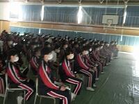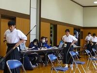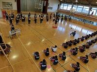 しろやま祭の午後に行う合唱のリハーサルが行われました。合唱する生徒や鑑賞する生徒は隣との間隔をとって実施しました。しろやま祭午前の部は保護者参観はリモートになるので、体育館の様子が各教室に配信されているかのテストも行いました。