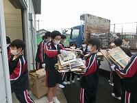 7月から10月中旬までに集まった資源物を搬出しました。あいにくの小雨でしたが、委員会の活動の時間にトラックに積みました。地域の皆様やPTAの皆様にもご協力いただいたおかげもあり、今回もたくさんのアルミ缶やダンボール、雑誌、古新聞が集まりました。ありがとうございます。