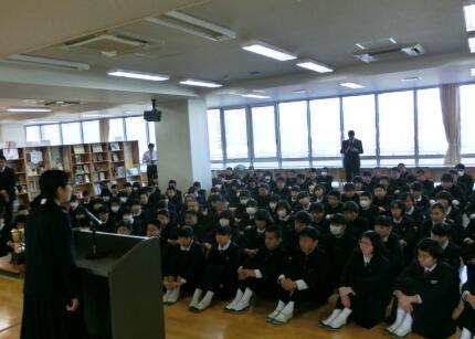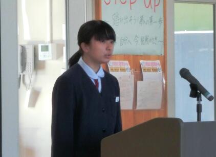 始業式では、いつものように、各学年代表生徒による意見発表がありました。