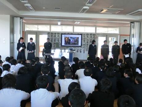 本校からは、新生徒役員が西方中の日々の取り組みについて、映像を