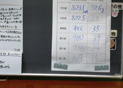 生徒にとって関心の高い給食を題材に、エネルギー量とタンパク質量に着