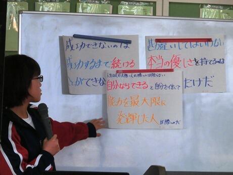 での歌声が、もどってきたかのようでした。その後、各学年代表生徒による
