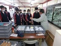 しろやま祭(学校祭)での発表に向けて「テーマ研究コース」のメンバーが西方城跡、二条城跡発掘調査現場に行きました。西方城や二条城についての説明を聴いた後、発掘調査の様子を見学してきました。