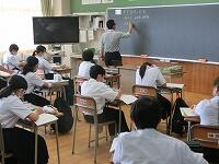 1年生では、アシストネットによる指導の先生をお招きして、書写の授業を行いました。1・2校時の2時間連続の授業で、夏休み中の課題である「希望と創造」の文字を描きました。「バランスに気をつけて、作品を仕上げよう。」のねらいのもと、一生懸命取り組んでいました。机の間を巡回しながら、一人一人丁寧に指導されていました。