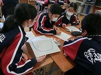 1年1組は英語の授業を参観しました。本時のねらいは疑問文をつくることで、生徒は友だちに英語で質問したり、答えたりして、熱心に取り組んでいました。