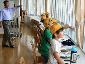 そして、2階の多目的室から見える自分たちの西方小学校を見て感嘆の声を