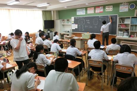 から橋本晃輔指導主事をお招きし、3年生の理科の授業「水溶液とイオン」