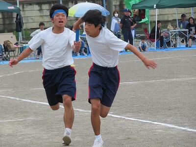 夏休み中から青組、赤組に分かれ、応援や各種目の打合せや練習に、主体的に取り組んできた生徒たち。運動会当日は、最後まであきらめずに頑張る姿が随所に見られました。朝早くから応援に駆けつけてくださいました来賓の皆様、地域の皆様、保護者の皆様ありがとうございました。