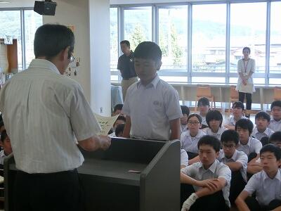 本日の全校集会で後期学級委員長・副委員長、新奉仕委員長、部活動の各新部長が任命されました。