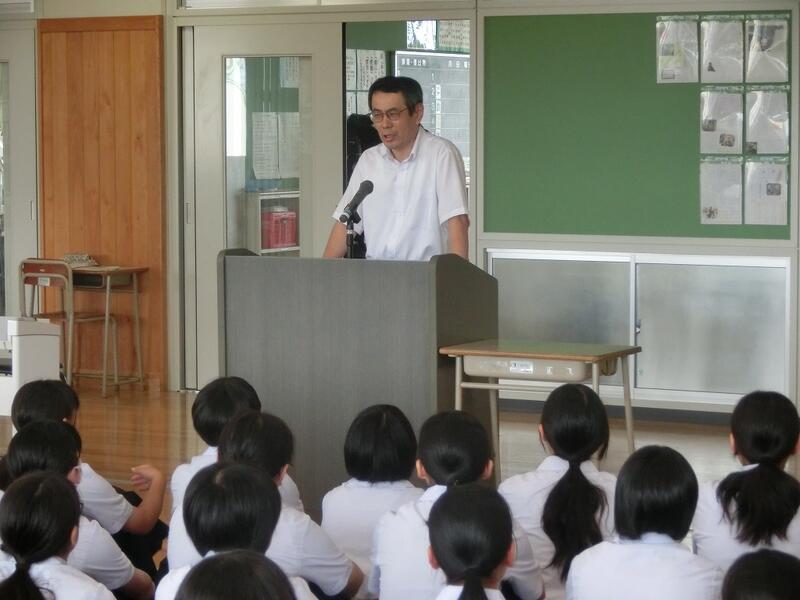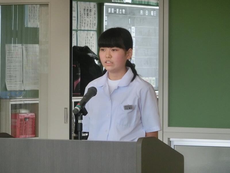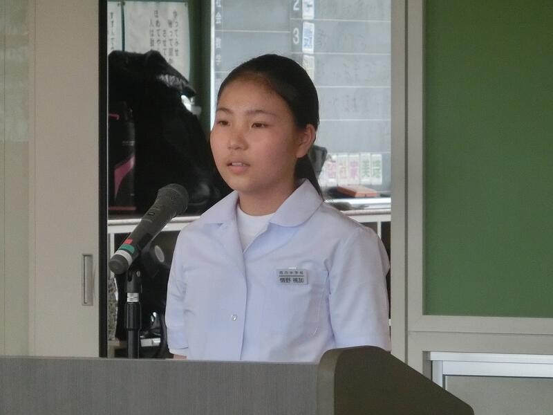 続いて校長先生のお話の後、各学年代表生徒と生徒会による意見発表がありました。