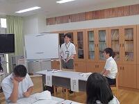 多目的室兼図書室にて、学校薬剤師「山中好夫」先生を講師にお迎えして