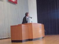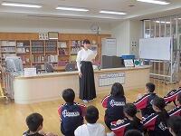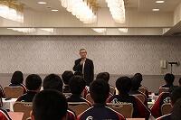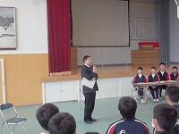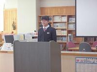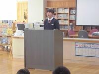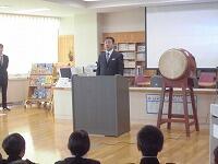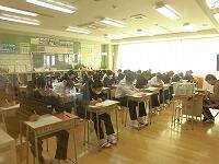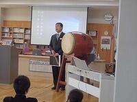 多目的室兼図書室にて、学校薬剤師「山中好夫」先生を講師に迎え