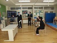 教頭の案内で、校内の施設や各教室で授業を行っているお兄さん・お姉さんの様子を見学しました。