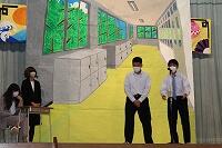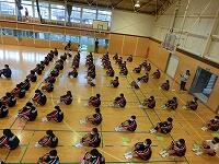 しろやま祭の午後に行う合唱のリハーサルが行われました。合唱する生徒や鑑賞する生徒は隣との間隔をとって実施しました。しろやま祭午前の部は保護者参観はリモートになるので、体育館の様子が各教室に配信されているかのテストも行いました。