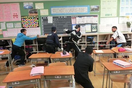 実施となりました。校舎内に侵入した不審者への対応や生徒の安全確