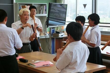 尺八と三味線・箏による先生方の演奏を緊張した面持ちで鑑賞しました。