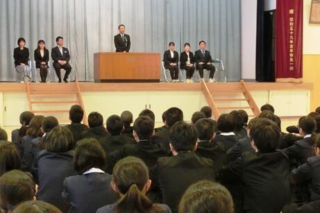 H27. 4/ 7(火) 新任式 投稿日時 : 2015/04/07 西方中管理者 3/31(火)の離任式では、お世話になった先生方とお別れをし、寂しい思いをしていましたが、今日の新任式で、新たに赴任された7名の教職員の紹介・挨拶がありました。 それぞれ前の学校や職場で、生徒や栃木市の教育のために尽力された方々ばかりです。西方中でも同様の、またそれ以上の力を発揮し、生徒のよいところをたくさん引き出してくれるものと期待しています。 生徒からは、生徒会長の歓迎の言葉と体育館に響く校歌で、歓迎の意を表しました。その後、明日実施される入学式の準備を全員で行いました。 {{options.likeCount}} {{options.likeCount}}