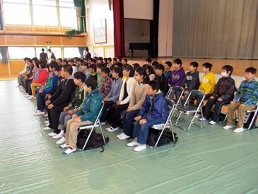 新入生オリエンテーションを8:00より実施しました。話を聞いている姿