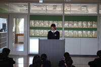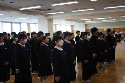 令和7年度 修了式 投稿日時 : 03/26 西方中管理者 3月24日(火)に令和7年度の修了式が行われました。 校長先生からこの一年を振り返って西方中の生徒の素晴らしかった点についてお話がありました。また年度当初にお話しされた、に「忍耐」し「信頼」か「感謝」た「達成会」のお話しがありました。この4つの点についてこの1年間、積み上げることが出来たこと確認、振り返りました。そして、新年度に向け、新3年生、新2年生として良いスタートを切ることが出来るように、この春休みを過ごせるとよいとのお話しがありました。 修了証授与(2)、作文発表(2)、校歌斉唱(2)、表彰(2)、生徒会から(1) Tweet {{options.likeCount}} {{options.likeCount}}